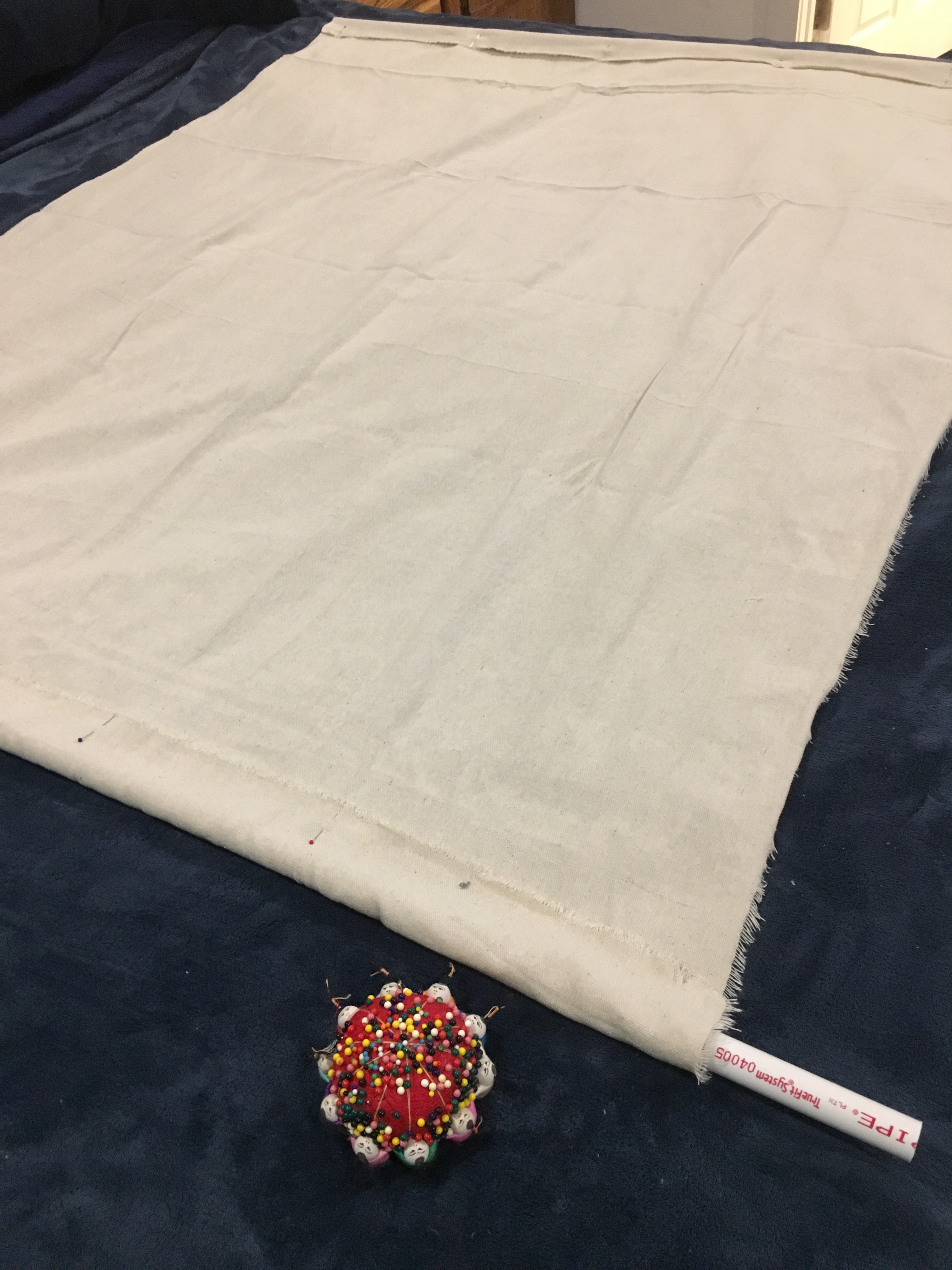 I sewed pockets on each side for the small diameter PVC pipe, and one hem (I used the salvage edge on the other side).