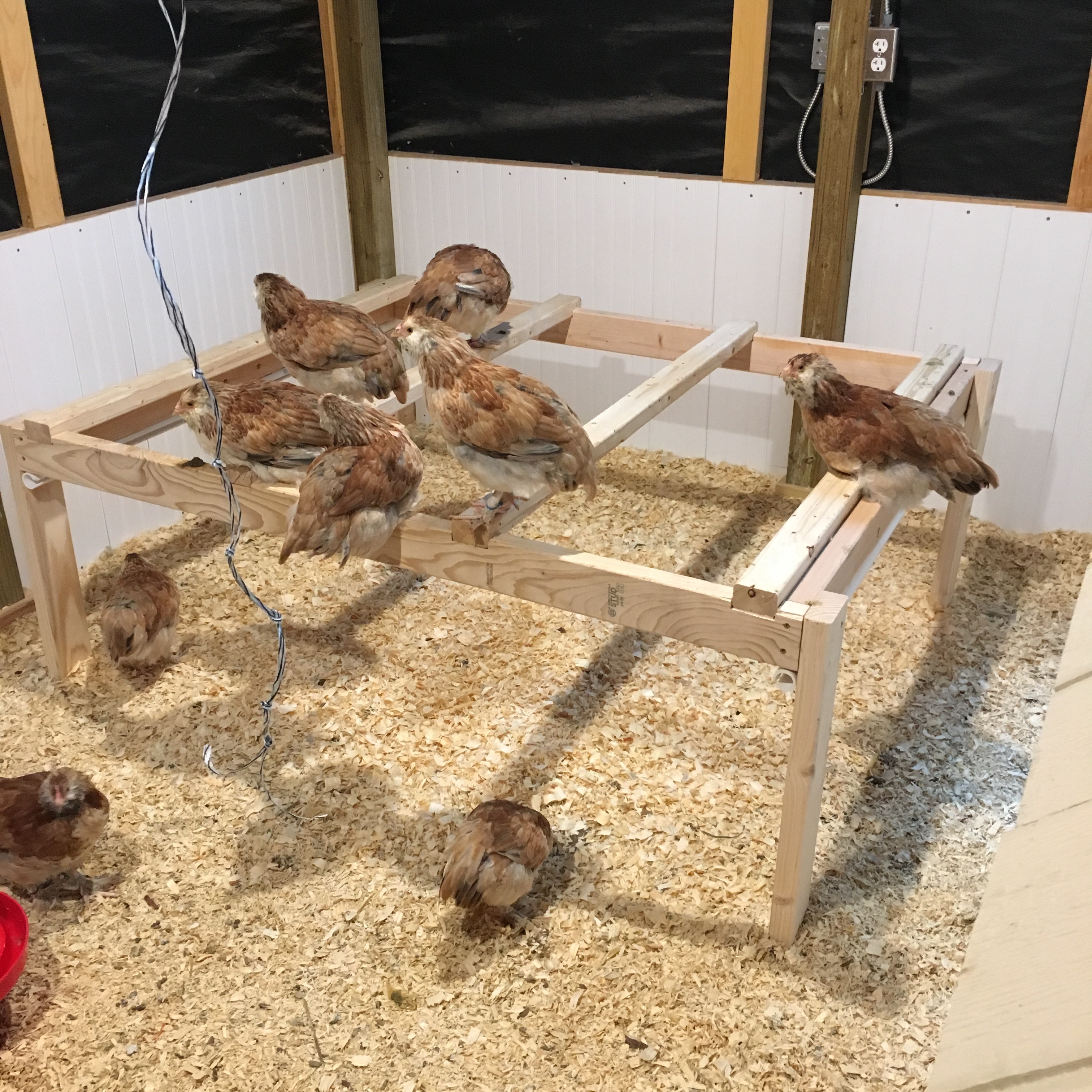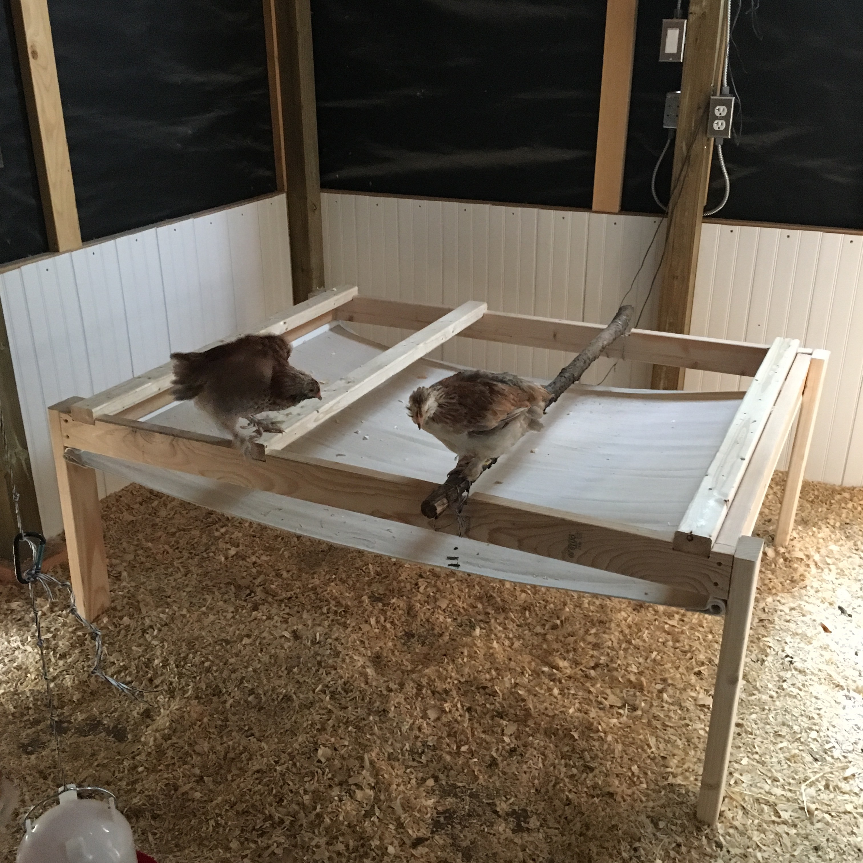 I made the chicks a new roost. I really made it for when they are older and roosting to sleep. Right now they still all huddle into one corner of the coop. So like human kids bouncing on the bed, this is more of just a jungle gym right now!