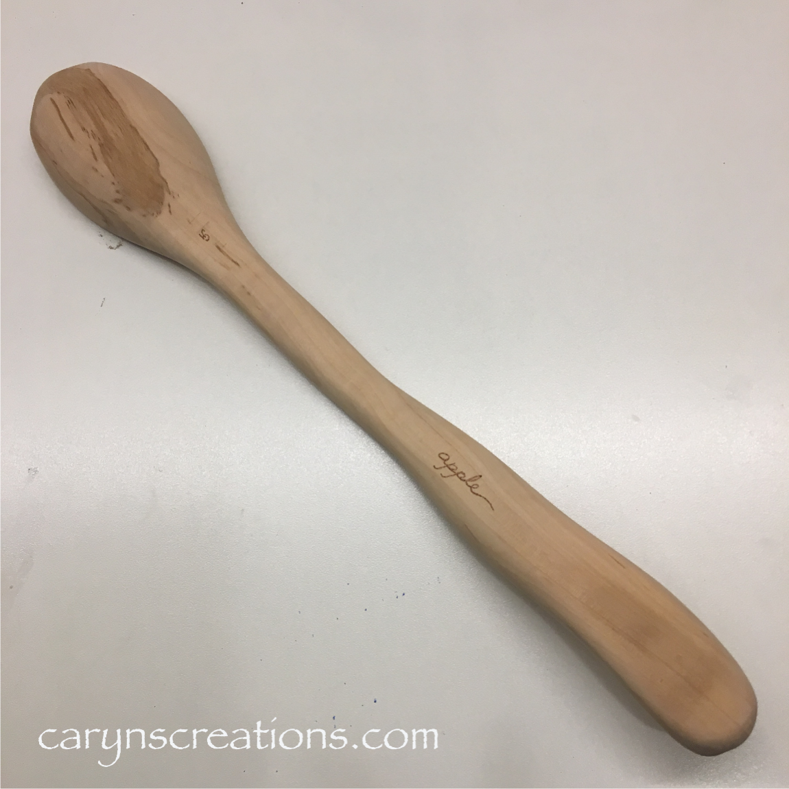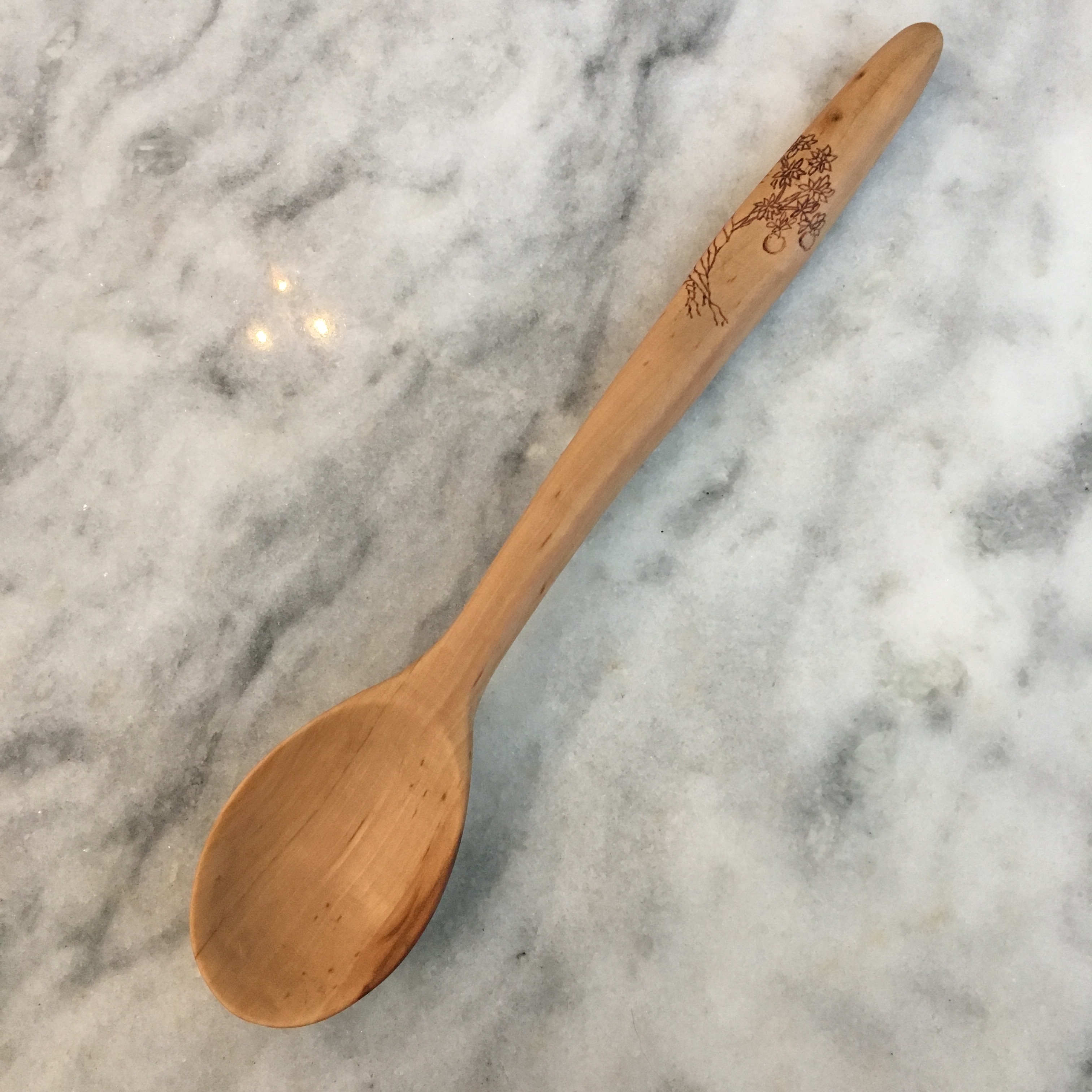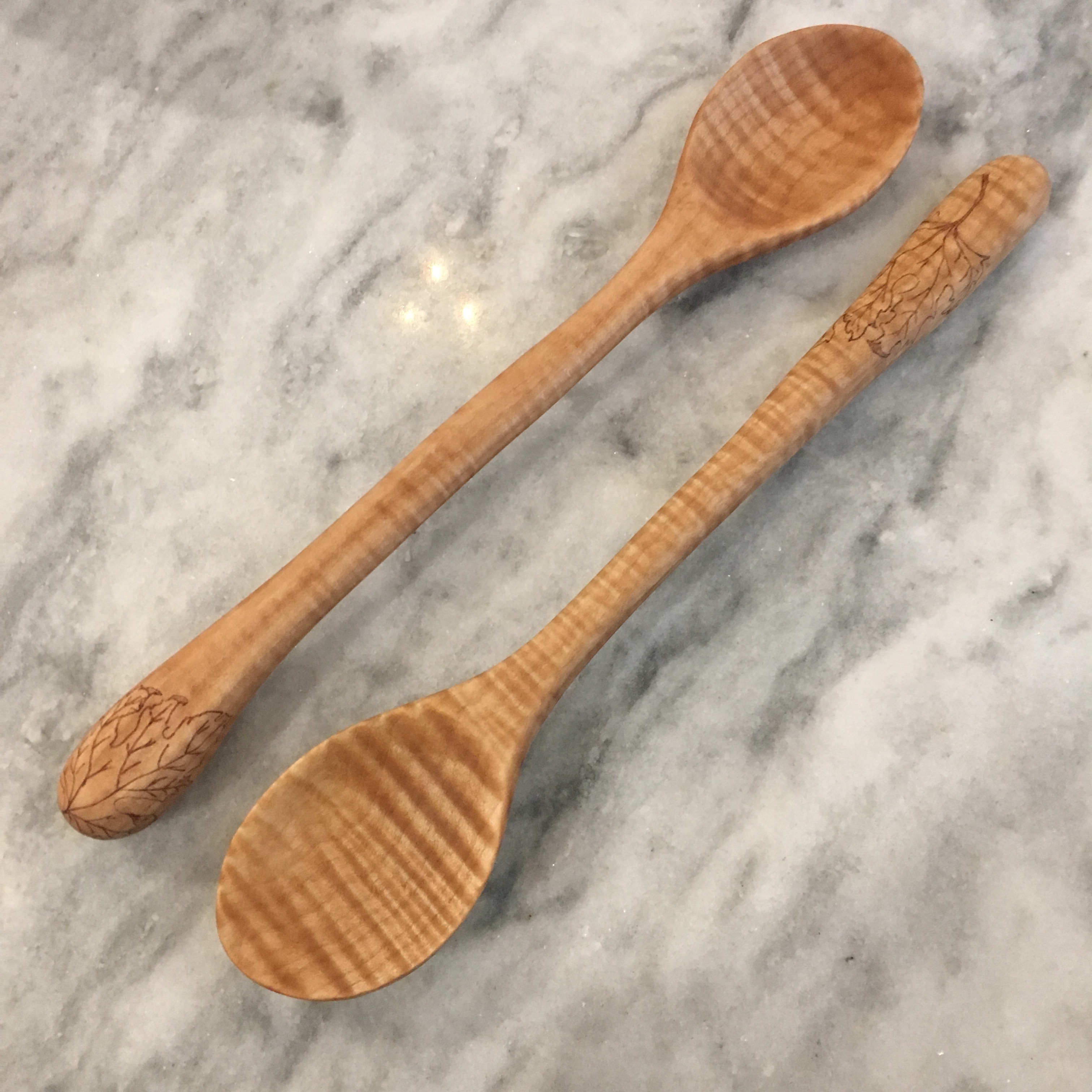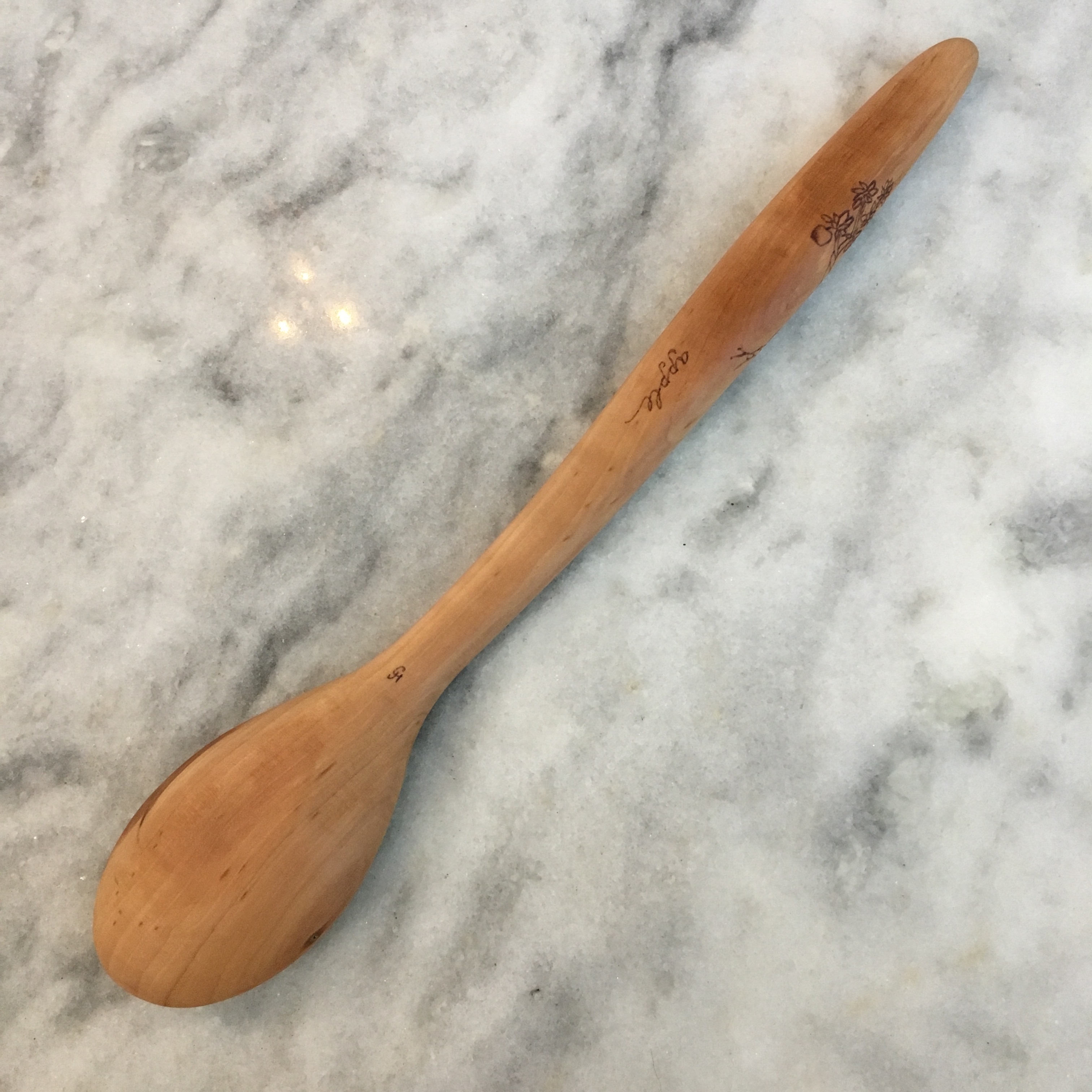 Here is another apple wood spoon, but with an apple tree design wood burned into the handle. I’m really enjoying making these utensils!