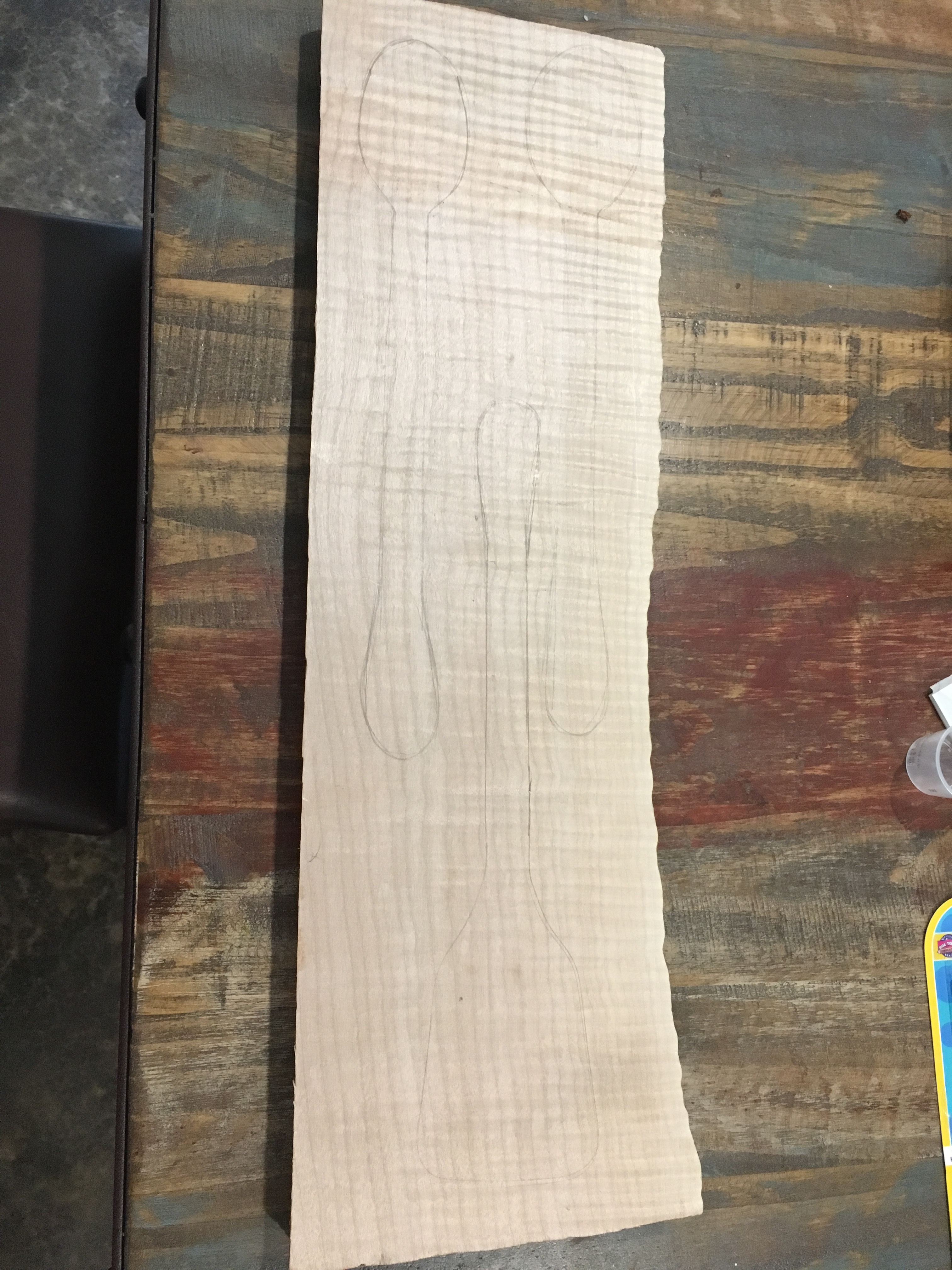 This is after I used the bandsaw to cut away most of the excess. I wanted a flowing wavy shape to the spoon.