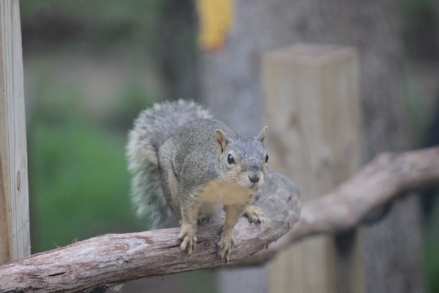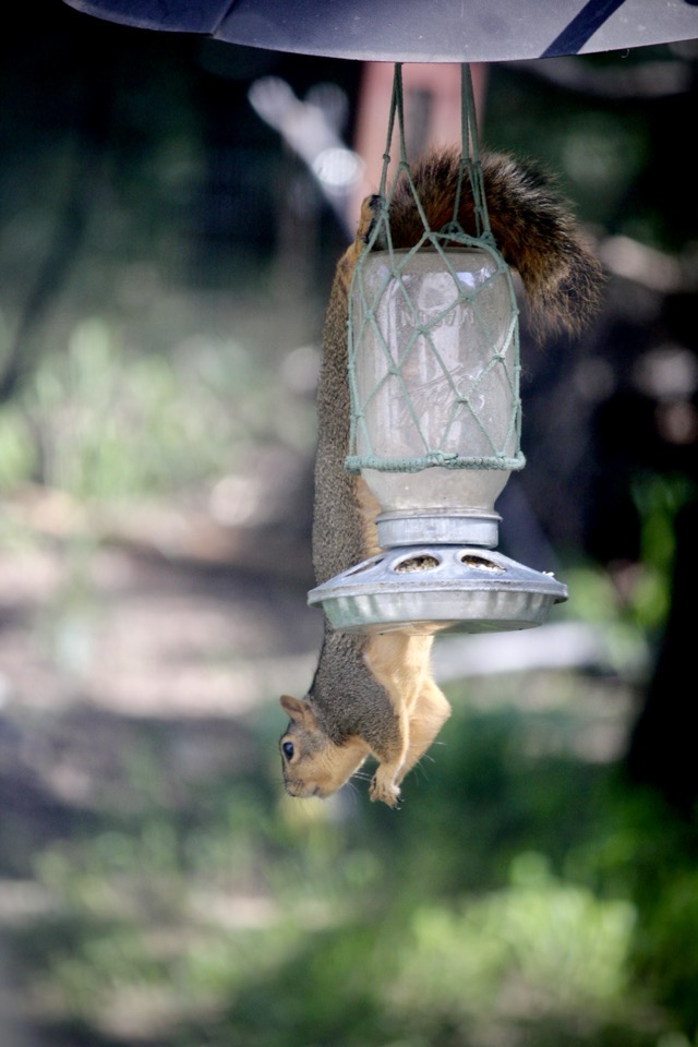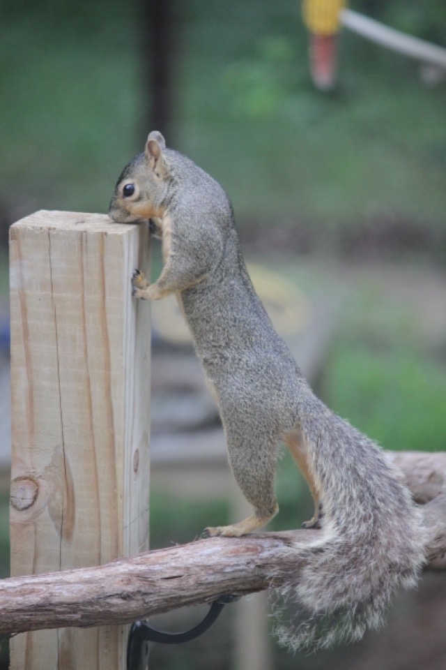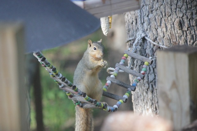 When I look out the window I’m just as likely to see a squirrel gnawing away at the antler as I am to see them eating corn or gathering peanuts.