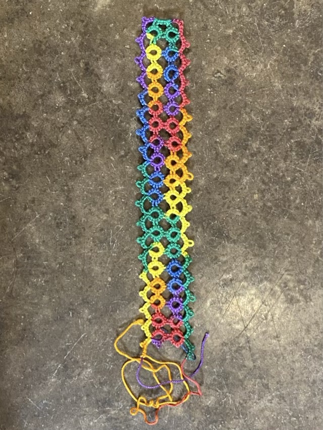 I understand now why tatted doilies are worked in closed rounds (I don’t like cutting my ends, so have been resistant), and why running lace is popular. My next tatting example for my swatch book will be a length of lace rather than trying another square.