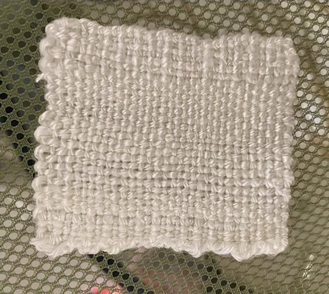 Despite the difficulties spinning, my swatches are more rectangular and less skewed than with other fibers. I block most of my swatches, but the Tencel really benefitted from being wet and reshaped.