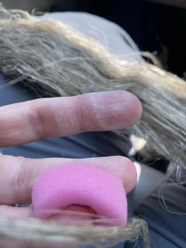 The rust color lessened, and now it looks more like a different batch of flax at the end, rather than a stain.