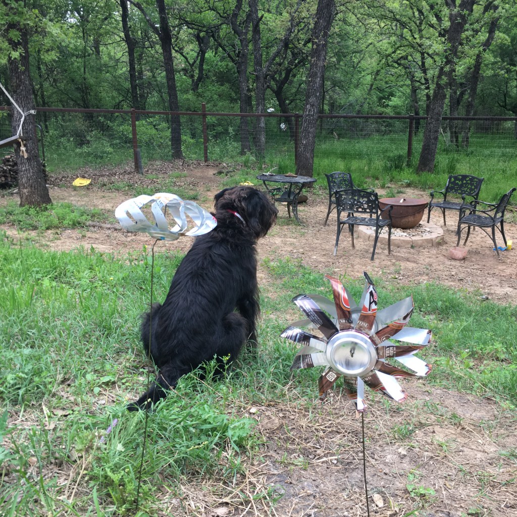 I mounted another wind spinner column on the catio. Obsessed? Me? Maybe. Here is a video for your spinning enjoyment.