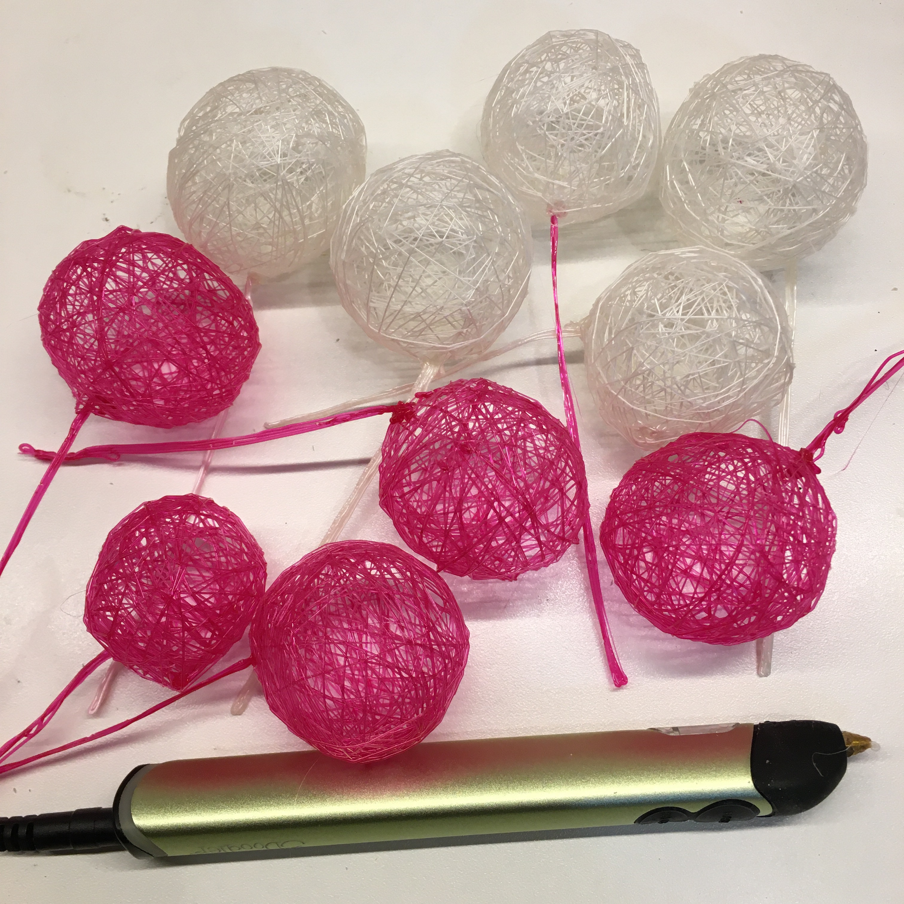 I decided to make some plastic globes with my 3Doodler Create. I’ve had the kit for a year, and I need some more interest on my wreath, so I decided to give it a try (and I’m avoiding cleaning.)