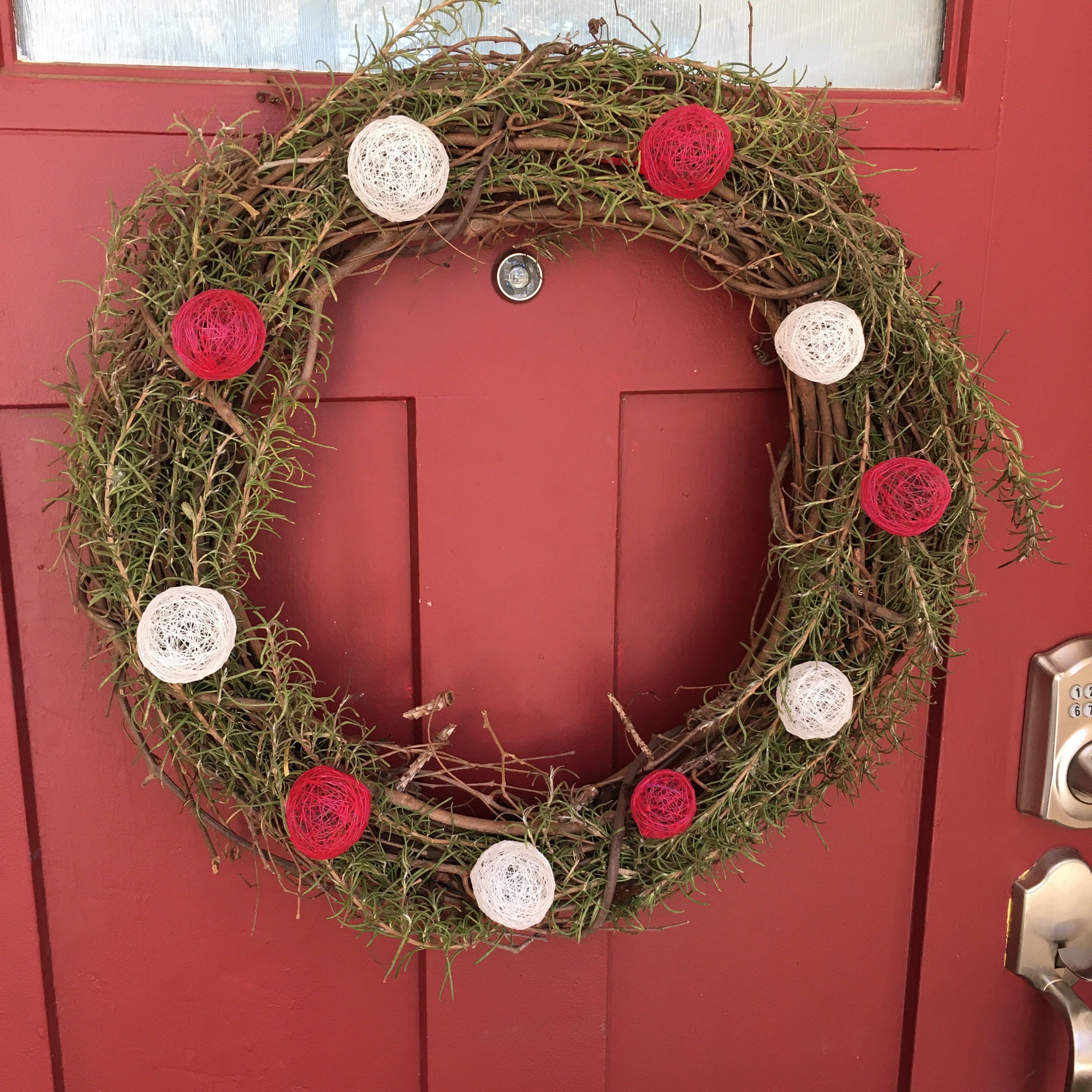 The pick on each globe slides easily into the vine wreath and stays well even when the door is opened and closed. I started with the globes arranged relatively evenly around the wreath. Eh.